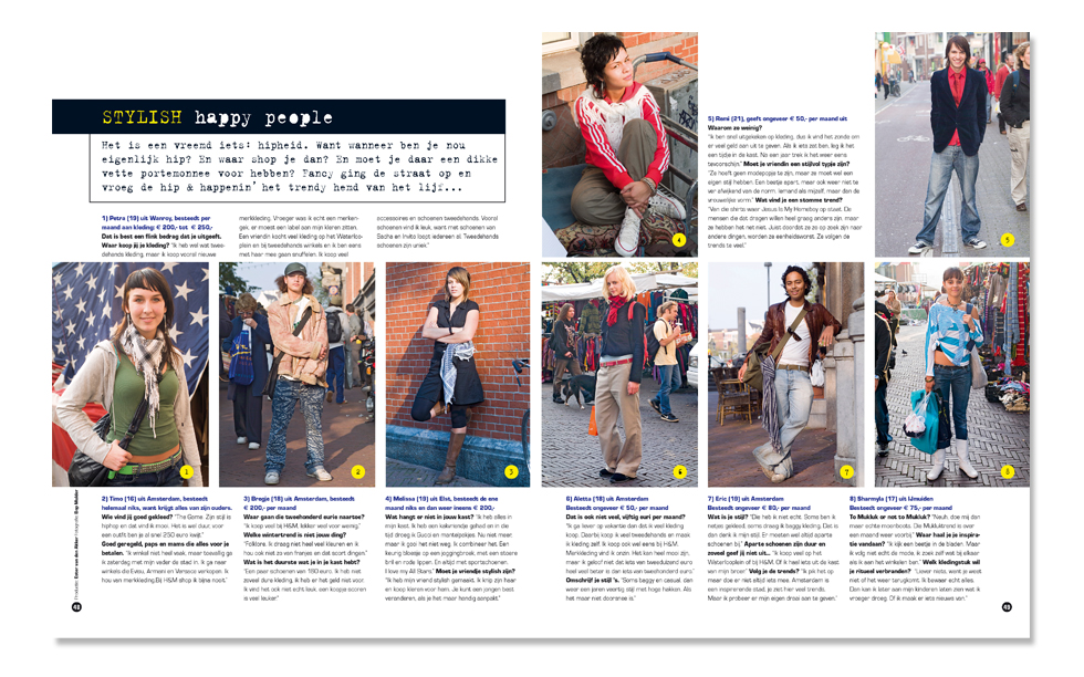 o.a. glossies Marie Claire, Glamour, Grazia en Beau Monde. Ook jeugd-en jongerenbladen Tina, Fancy en Yes | over een periode van 9 jaar.