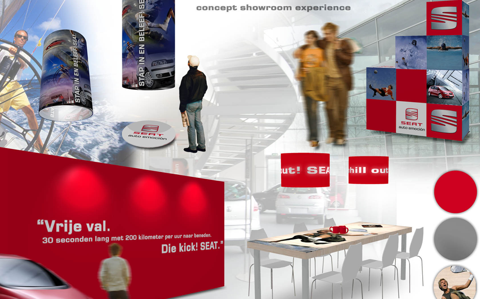 Typografie, belettering en beeldredactie designcampagne SEAT Dealership Showroom Experience.
