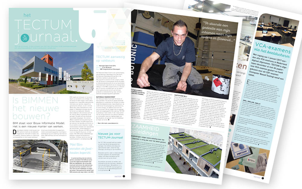 Study prospectus, corporate newspaper TECTUM-Journaal, exhibition materials, banners, etc.
